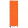 Las taquillas de melamina de 2 puertas son también adecuadas para colgar ropa porque son las que disponen de suficiente espacio libre. El espacio disponible es de 88 cm de medida interior. Llevan un colgador para colgar la ropa con perchas. Las traseras disponen de un panel perforado para la ventilación. También etiqueteros y numeración para personalizar la puerta de cada taquilla (estos son accesorios opcionales).